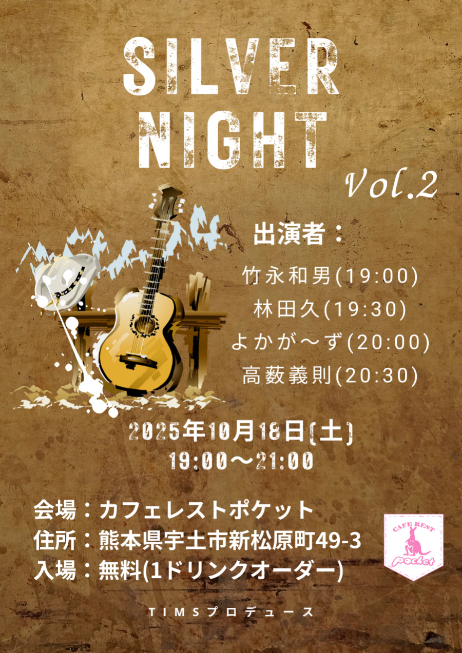 出演:竹永和男(19:00~)、林田久(19:30~)、よかが~ず(20:00~)、高薮義則(20:30~)